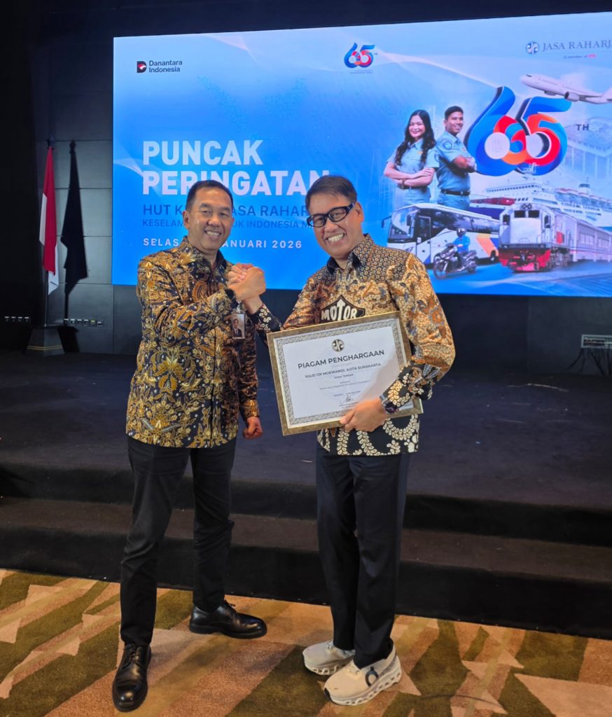 Direktur utama PT. Jasa Raharja, Muhammad Awaluddin, secara langsung menyerahkan penghargaan tersebut kepada Direktur RSUD Dr. Moewardi, dr. Zulfachmi Wahab, Sp.PD-KHOM, FINASIM, Selasa (20/01/2026).